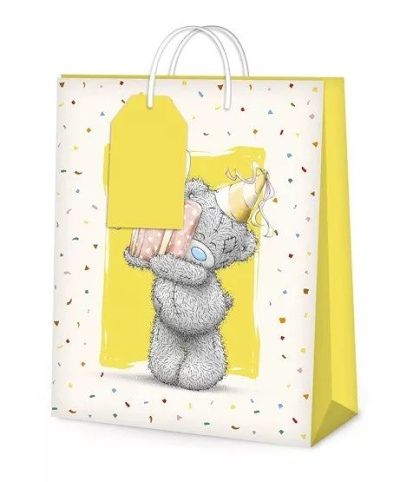 Krásné dárkové tašky s klasickým medvídkem Me to You s roztomilým modrým nosem a záplatou. Rozměry: 18 cm × 23 cm × 9,5 cm