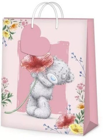 Krásné dárkové tašky s klasickým medvídkem Me to You s roztomilým modrým nosem a záplatou. Rozměry: 18 cm × 23 cm × 9,5 cm