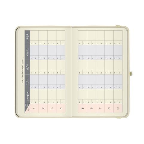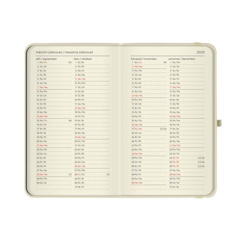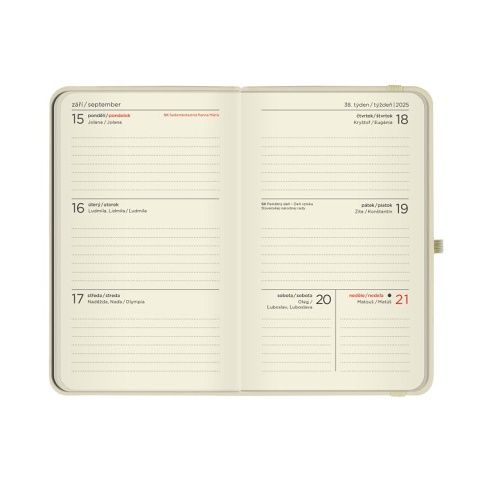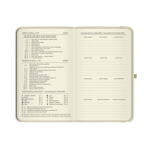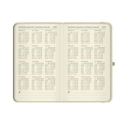 Mezi studenty velmi oblíbené Studentské diáře na gumičku obsahují týdenní kalendárium od září 2025 do prosince 2026 a hodně místa na poznámky. Diářům nechybí ani poutko na propisku a látková stuha jako záložka. Rozměry: 9 × 14 × 1,5 cm