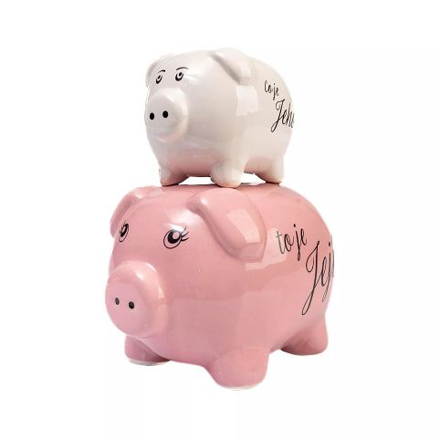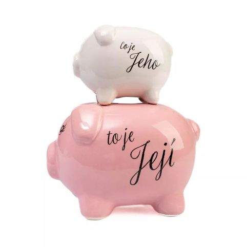Humorná svatební pokladnička ve tvaru prasátek. Celková výška: 20 cm Celková šířka: 12 cm