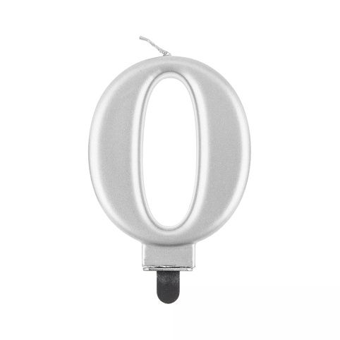 Stříbrná dortová svíčka ve tvaru číslice. Výška svíčky: 8 cm Obsah balení: 1 ks svíčky ve stříbrné barvě