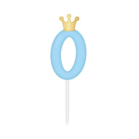 Originální dortová svíčka ve tvaru světle modré číslice 0 se zlatou korunkou stylově dozdobí dort na dětskou narozeninovou oslavu či párty. Výška svíčky: 6 cm (10,5 cm včetně plastového zápichu) Obsah balení: 1 ks modré svíčky s korunkou