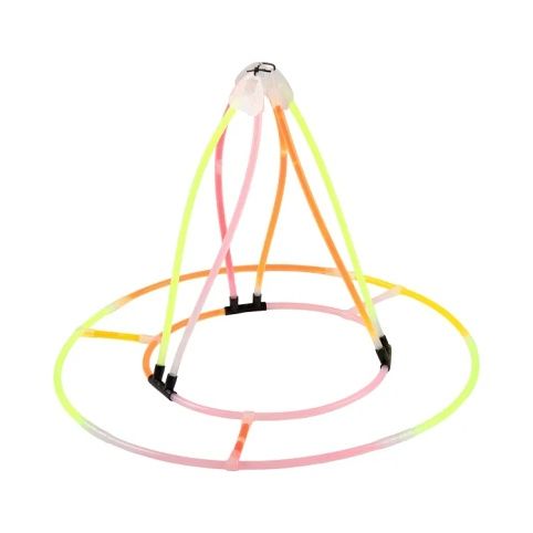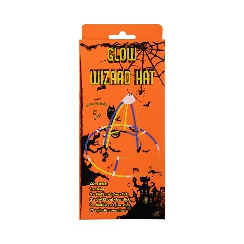 Sada, se kterou si jednoduše vytvoříte svítící čarodějnický klobouk. Balení obsahuje tyčinky, které po aktivaci svítí ve tmě. Svítící tyčinky vydrží svítit až 5 hodin! Balení obsahuje: 3 × svítící tyčinka (5 cm), 5 × svítící tyčinka (15 cm), 9 × svítící tyčinka (20 cm), 1 × provázek a 17 × konektor Použití: Tyčinku ohýbejte, lámejte a třeste s ní. Může trvat několik okamžiků, než dosáhne plného jasu. Upozornění: Uchovávejte svítící tyčinku v původním obalu, dokud nebude připravena k použití. Vnitřní tyčinka obsahuje sklo. Neprořezávejte ani nepropichujte povrch svítící tyčinky. Chemické látky ve výrobku jsou nehořlavé, ale mohou trvale znečistit nábytek, oblečení a koberce. Po použití svítící tyčinku zlikvidujte v souladu se zákonem o odpadech. Nenechávejte svítící tyčinky na přímém slunci ani je nevystavujte vysokým teplotám. Při zasažení kůže nebo očí důkladně vypláchněte vodou. Složky nezpůsobí poranění očí, ale mohou způsobit dočasné potíže. Nepijte tekutinu ani ji nevkládejte do úst! Vhodné pro děti od 5 let. Doporučuje se dohled dospělé osoby.