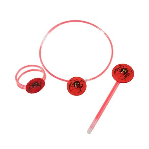 Svítící pavoučí sada, se kterou rozzáříte každou párty! Ze sady vyrobíte svítící náhrdelník, hůlku a náramek ozdobené obrázky děsivých pavouků. Balení obsahuje tyčinky, které po aktivaci svítí ve tmě. Svítící tyčinky vydrží svítit až 5 hodin! Balení obsahuje: 3 × svítící tyčinka (5 cm), 5 × svítící tyčinka (15 cm), 9 × svítící tyčinka (20 cm), 1 × provázek a 17 × konektor Použití: Tyčinku ohýbejte, lámejte a třeste s ní. Může trvat několik okamžiků, než dosáhne plného jasu. Upozornění: Uchovávejte svítící tyčinku v původním obalu, dokud nebude připravena k použití. Vnitřní tyčinka obsahuje sklo. Neprořezávejte ani nepropichujte povrch svítící tyčinky. Chemické látky ve výrobku jsou nehořlavé, ale mohou trvale znečistit nábytek, oblečení a koberce. Po použití svítící tyčinku zlikvidujte v souladu se zákonem o odpadech. Nenechávejte svítící tyčinky na přímém slunci ani je nevystavujte vysokým teplotám. Při zasažení kůže nebo očí důkladně vypláchněte vodou. Složky nezpůsobí poranění očí, ale mohou způsobit dočasné potíže. Nepijte tekutinu ani ji nevkládejte do úst! Vhodné pro děti od 5 let. Doporučuje se dohled dospělé osoby.