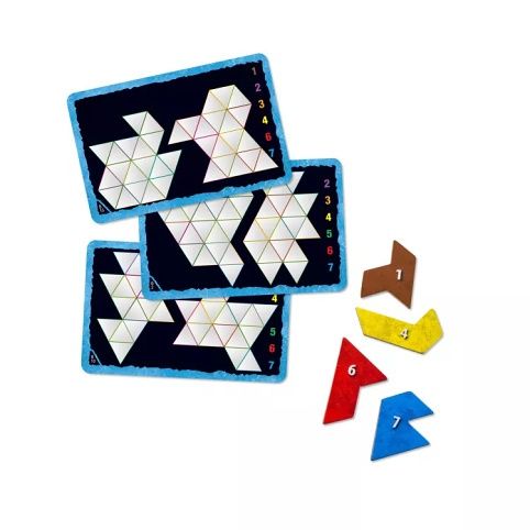 Jednoduchá rodinná hra vhodná děti od 7 let, ve které je úkolem hráčů najít správné trojúhelníkové dílky, a co nejrychleji jimi zaplnit dvě prázdná pole na kartě najednou. Zmenšená variace hry Ubongo.