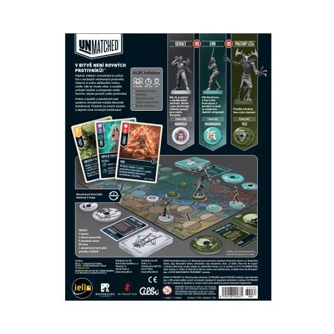 Hrdinové ságy Zaklínač se přidávají k soubojům nečekaných protivníků! Hrdiny a bojiště z jednotlivých sad systému Unmatched můžete kombinovat. Vyberte si svého oblíbeného hrdinu, zvolte, kde se chcete utkat, a využijte unikátní balíček a schopnosti svého favorita, abyste porazili svého protivníka. Hra obsahuje: 4 figurky, 4 žetony pomocníků, 5 ukazatelů zdraví, 99 karet, 1 oboustranný herní plán, pravidla v češtině.