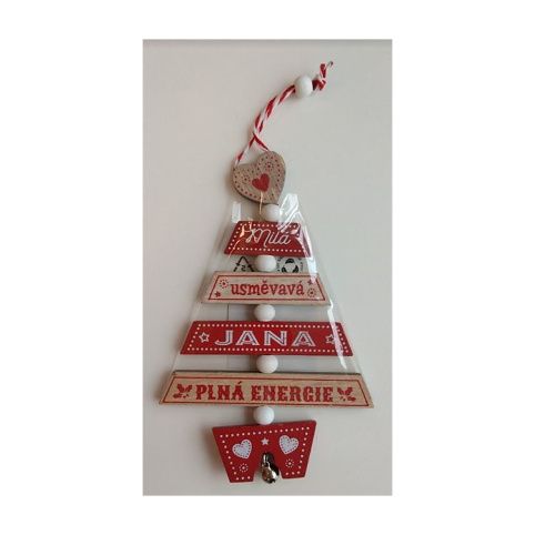 Dřevěná ozdoba na stromeček se jménem.