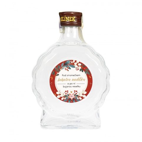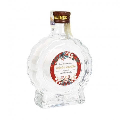 Česká slivovice Rudolf Jelínek v netradiční menší lahvi s vánočním věnováním potěší každého, kdo rád holduje tekutým švestkám.