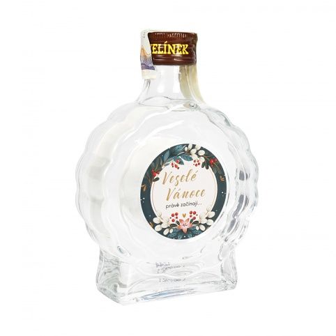 Česká slivovice Rudolf Jelínek v netradiční menší lahvi s vánočním věnováním potěší každého, kdo rád holduje tekutým švestkám.