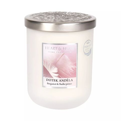 Heart & Home, to je nová prémiová značka svíček. Proč jsou tyto svíčky tak výjimečné? Jsou vyrobeny z vysoce kvalitních komponentů - je používán sójový vosk, knoty z Německa a jedinečné vůně jsou dodávány od velice ceněných výrobců. Vosk pro tyto svíčky byl vyroben ze sójových bobů. Díky tomu jsou svíčky Heart & Home šetrnější a přívětivější k životnímu prostředí, jsou netoxické, a vy tak můžete relaxovat s pocitem, že jste přispěli k tomu, aby naše příroda zůstala krásná. Heart & Home svíčky hoří při nižších teplotách, než klasické svíčky, a tak prosvítí váš domov na dlouhou a dlouhou dobu… Sójový vosk je aromatizovaný, takže svíčka navozuje nejen hřejivý pocit, ale váš domov bude i krásně provoněn vůní, kterou si vyberete pro navození té správné atmosféry. A to i když svíčka zrovna nehoří. Použitý vosk totiž umožňuje, aby se esence s voskem lépe propojila, a vůně svíček je tak intenzivnější. Kromě toho svíčky také krásně vypadají a jsou navrženy tak, aby se sklenice poté, co vyhoří, daly použít i jako elegantní dóza nebo dekorace. Takže proč někoho jedinečného neobdarovat jedinečnou svíčkou, nebo si jen tak neudělat radost a ponořit se do světa snění, odpočinku a pohody? Rozzáří a provoní váš domov až na 70 hodin. Velké svíčky jsou vhodné především do velkých místností. Tip: Unikátní kovové víčko lze použít pro zhasínání svíčky.