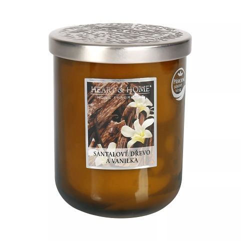 Heart & Home, to je nová prémiová značka svíček. Proč jsou tyto svíčky tak výjimečné? Jsou vyrobeny z vysoce kvalitních komponentů - je používán sójový vosk, knoty z Německa a jedinečné vůně jsou dodávány od velice ceněných výrobců. Vosk pro tyto svíčky byl vyroben ze sójových bobů. Díky tomu jsou svíčky Heart & Home šetrnější a přívětivější k životnímu prostředí, jsou netoxické, a vy tak můžete relaxovat s pocitem, že jste přispěli k tomu, aby naše příroda zůstala krásná. Heart & Home svíčky hoří při nižších teplotách, než klasické svíčky, a tak prosvítí váš domov na dlouhou a dlouhou dobu… Sójový vosk je aromatizovaný, takže svíčka navozuje nejen hřejivý pocit, ale váš domov bude i krásně provoněn vůní, kterou si vyberete pro navození té správné atmosféry. A to i když svíčka zrovna nehoří. Použitý vosk totiž umožňuje, aby se esence s voskem lépe propojila, a vůně svíček je tak intenzivnější. Kromě toho svíčky také krásně vypadají a jsou navrženy tak, aby se sklenice poté, co vyhoří, daly použít i jako elegantní dóza nebo dekorace. Takže proč někoho jedinečného neobdarovat jedinečnou svíčkou, nebo si jen tak neudělat radost a ponořit se do světa snění, odpočinku a pohody? Rozzáří a provoní váš domov až na 70 hodin. Velké svíčky jsou vhodné především do velkých místností. Tip: Unikátní kovové víčko lze použít pro zhasínání svíčky.