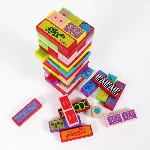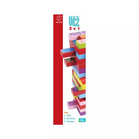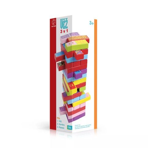 Dřevěná hra Věž dříve známá také jako "Jenga" pomáhá rozvíjet jemnou dětskou motoriku i soustředěnost. S barevnými dřevěnými kameny z Věže je možné hrát také pexeso a domino. Pexeso je skvělou cestou, jak trénovat paměť dětí, ale i dospělých. K dominu je třeba trochu té vizuální představivosti, ale zato si pořádně zasoutěžíte! Hra obsahuje: 52 hracích kamenů, hrací kostku a pravidla.