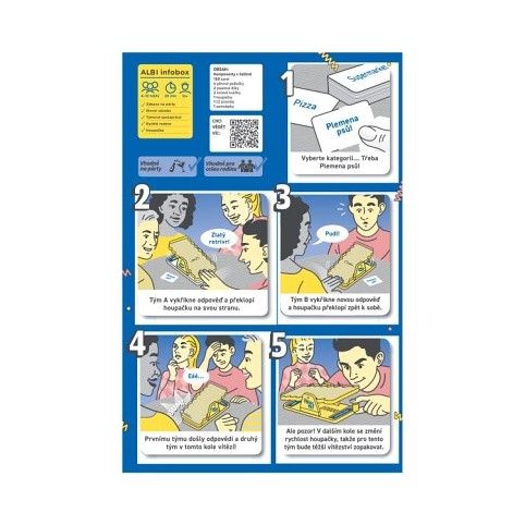 Nakloňte houpačku, vyklopte odpověď - v tom spočívá bláznivá rodinná hra Vyklop to, ve které se týmy utkají o poslední slovo. Hra obsahuje: 150 karet s kategoriemi, 4 pěnové podložky, 2 plastové zarážky, 1 houpačku, 1 kovovou kuličku a pravidla hry.