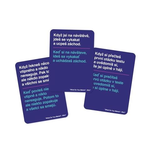 Desková hra What Do You Meme Mini může posloužit k pochopení principu hry, nebo s ní lze rozšířit sbírku textových karet základní verze. Hra What Do You Meme Mini obsahuje: 120 textových karet, 30 obrázkových karet, česká a slovenská pravidla.