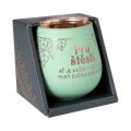 Svícny vyrobené z ručně foukaného skla s milým věnováním zútulní váš domov. Varování: Nedotýkejte se svícnu, pokud v něm hoří svíčka. Sklo je horké! Nevhodné pro styk s nápoji a potravinami.