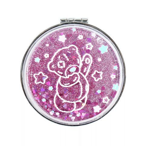 Kosmetické zrcátko s motivy medvídka Me to You v pouzdru s tekutými třpytkami. Průměr: 8 cm