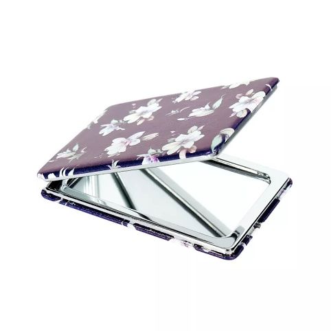 Kapesní zrcátko je v jedné půlce zvětšovací, v druhé normální. Rozměry: 6 × 8,5 × 1 cm