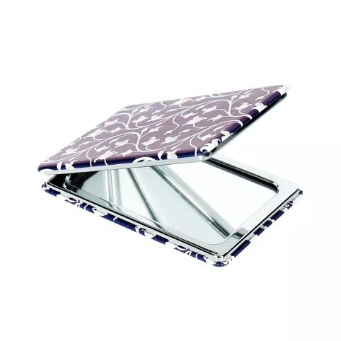 Kapesní zrcátko je v jedné půlce zvětšovací, v druhé normální. Rozměry: 6 × 8,5 × 1 cm