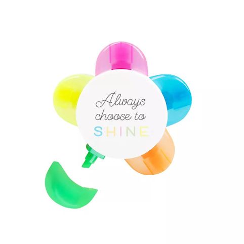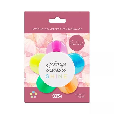 Zvýrazňovače - Květina: Sada zvýrazňovačů 5 různých barev, které jsou uloženy v boxu ve tvaru květiny.
