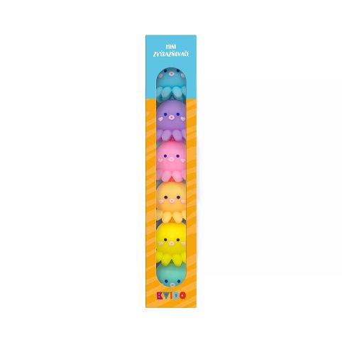 Zvýrazňovače od Kvída v mini verzích ve tvaru chobotničky jsou určené pro výtvarné a umělecké účely. Balení obsahuje 5 kusů v různých barvách.