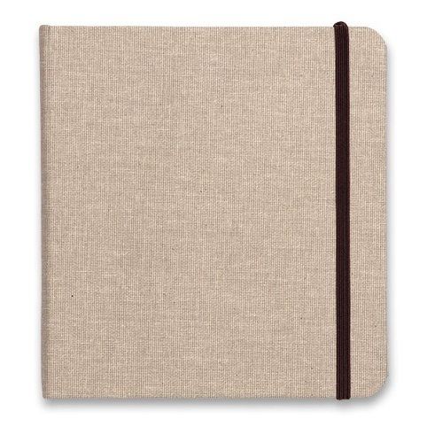 Album Clairefontaine Goldline Natural s rozměry 20 x 20 cm má pevnou látkovou vazbu s pružnou páskou proti otevření. Papír je vhodný na suché i mokré techniky.