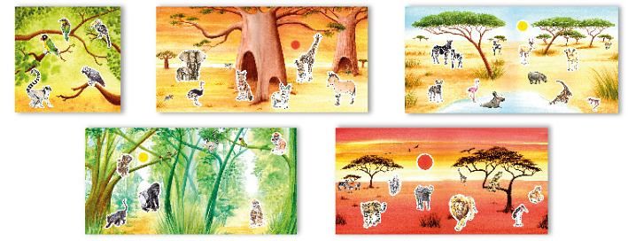 Lesklá obálka, 9 lesklých vnitřních stran a 2 strany lesklých opakovatelně snímatelných samolepek, v tomto produktu si děti pomocí samolepek sestavují obrázky, tím rozvíjí prostorové vnímáni a svou fantazii, rovněž pomocí samolepek doplňují hlavolamy a kvízy.