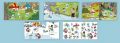 Lesklá obálka, 12 lesklých vnitřních stran a 2 strany lesklých opakovatelně snímatelných samolepek, v tomto produktu si děti pomocí samolepek sestavují obrázky, tím rozvíjí prostorové vnímáni a svou fantazii, rovněž pomocí samolepek doplňují hlavolamy a kvízy.