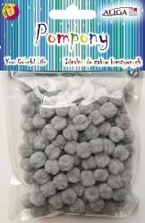 Balení 120 ks šedých bambulí o velikosti 1 cm.