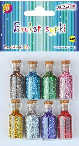 Dekorační brokát v lahvičce, 8 metalických barev, 1 barva obsahuje 7g.