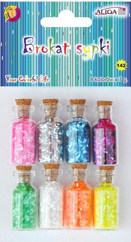 Dekorační brokát v lahvičce, 8 pastelových barev, 1 barva obsahuje 7g.
