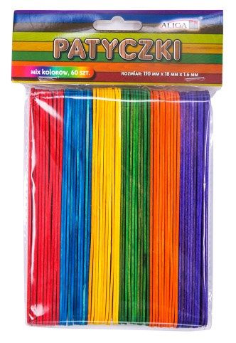 Dřívka barevné o velikosti 67 x10 x 2mm. V balení 60 ks.