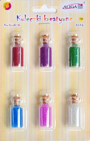 Dekorační kuličky na blistru v ampulkách. Blistr obsahuje 6 barev.