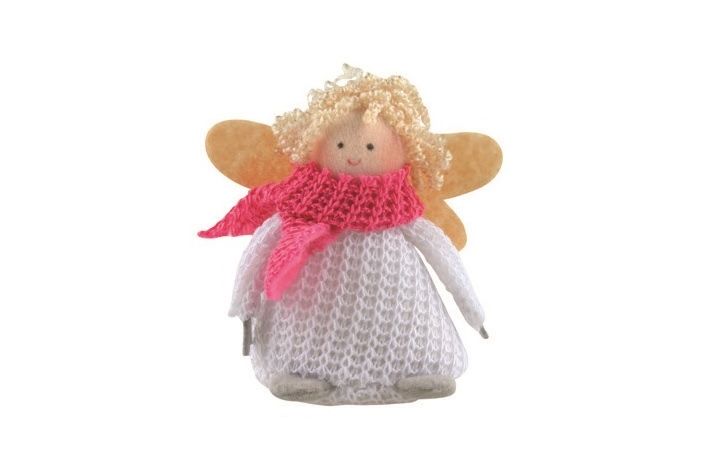 Anděl bílé pletené šaty 8cm s kudrnatými vlásky