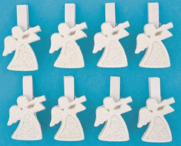 Anděl bílý akryl s glitry 3 cm, na kolíčku, 8 ks
