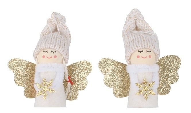 Anděl bílý se zlatou vločkou na zavěšení 7,5 cm