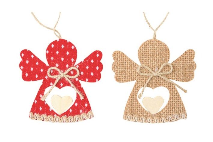 Anděl červený a jutový o velikosti 9cm, 2ks v sáčku.