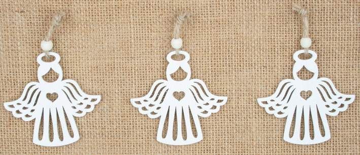 Anděl dřevěný bílý 6,5 cm 3ks, na zavěšení