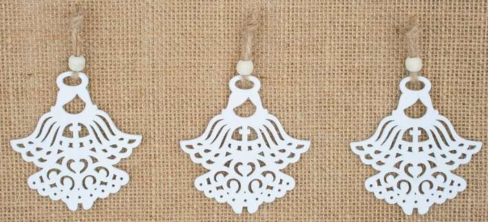 Anděl dřevěný bílý 6,5 cm 3ks, na zavěšení