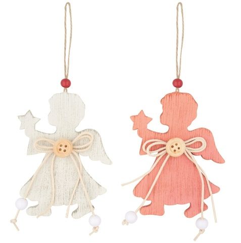 Anděl dřevěný + knoflík 8 cm na pověšení