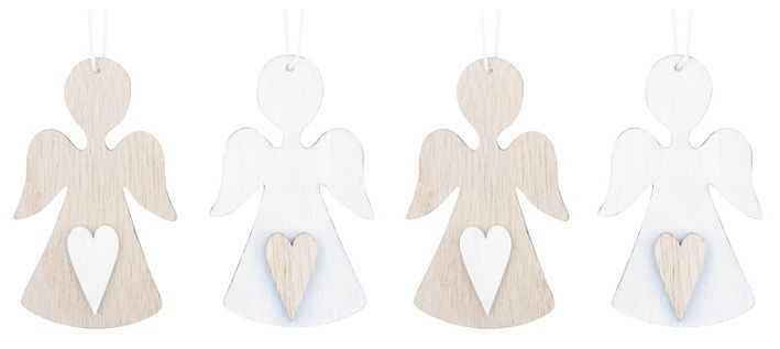 Anděl dřevěný na zavěšení 7 cm, 4 ks