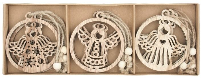 Anděl dřevěný přírodní 7,5 cm 9 ks, v krabičce