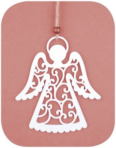 Anděl dřevěný s dekorem na zavěšení 12 cm, bílý