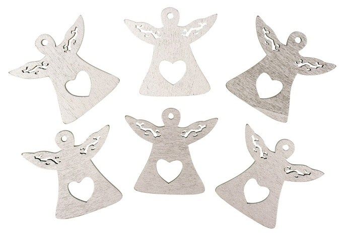 Anděl dřevěný s lepíkem 4,5 cm,stříbrný,6ks