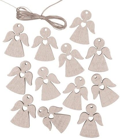 Anděl dřevěný stříbrný 3 cm 12 ks na zavěšení