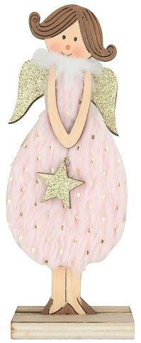 Anděl dřevěný v růžových šatech 16 cm, na postavení