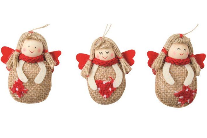 Anděl jutový s červenými křídly 6cm na pověšení