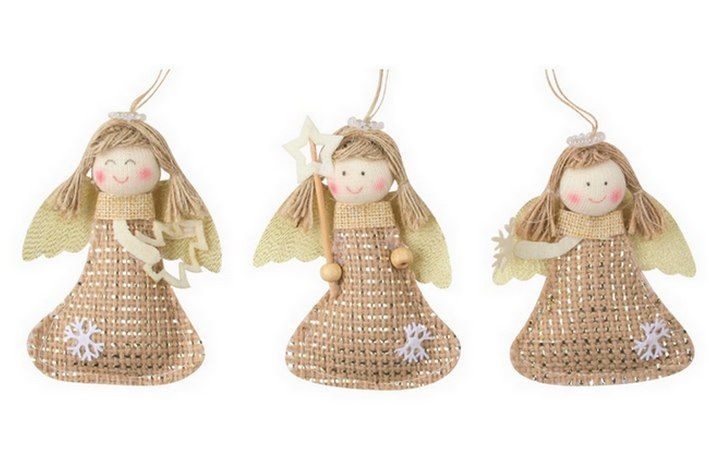 Anděl jutový se zlatou nitkou na zavěšení 9 cm