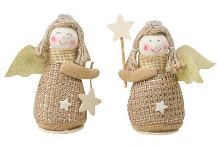 Anděl jutový zlatý dekor n apostavení 9 cm