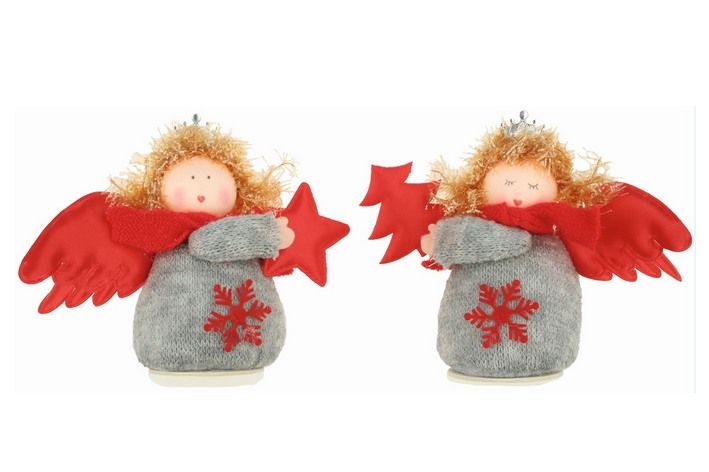 Anděl pletený červenošedý na postavení 12cm