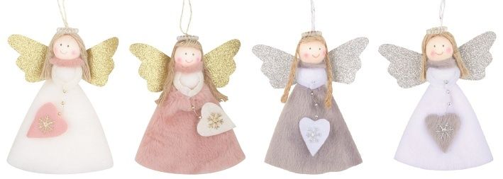Anděl plyšový se srdcem 14 cm k zavěšení